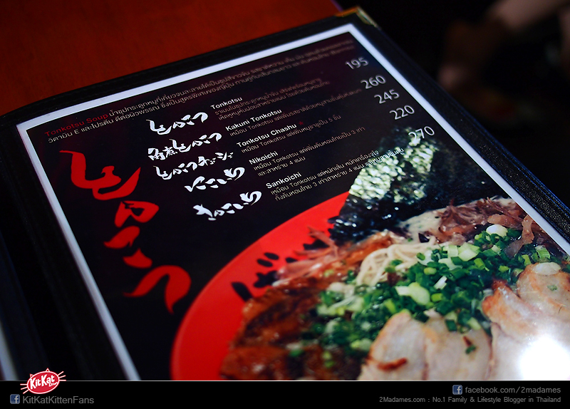 หลังจากหมูสามชั้น เข้าไปในปาก บอกได้คำเดียวว่าฟินมากๆ ทั้งน้ำซุปและเส้น เข้ากันอย่างลงตัว บางคนอาจจะบอกว่าค่อนข้างเลี่ยน มันเป็นแบบนั้นจริงๆค่ะ แต่ก็แล้วแต่ความชอบค่ะ นอกจากนี้ยังมีซุปอื่นๆให้เลือกทานได้อีก เช่น Tsukemen Soup ซุปกระดูกหมูและซุปไก่ ผสมซุปปลาทะเลแห้ง และ Miso Soup ซุปกระดูกหมูผสมปรุงรสกับเต้าเจี้ยวญี่ปุ่น ค่ะ