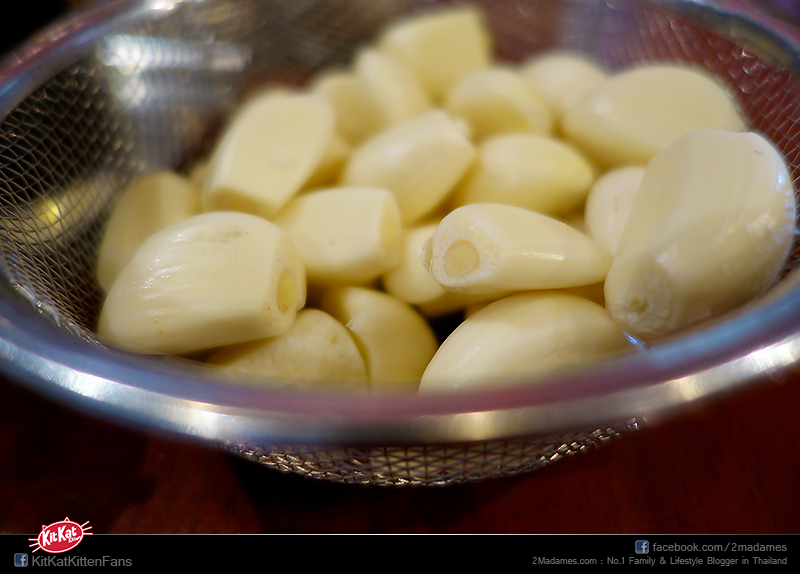 อ้อ…เพื่อความอร่อยต้องทานคู่กับเครื่องเคียงอย่างกระเทียมค่ะ