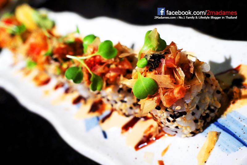 มาทั้งทีสั่งทานให้หลากหลายลองซูชิดูบ้าง กับเมนู Signature Sushi Roll THE WHITE HOUSE ราคา 400++ บาท เป็นข้าวห่อสาหร่ายไส้ปลาแซลมอนทอดเทมปุระ เพิ่มคุณค่าด้วยอะโวคาโด และมีซอสทาร์ทาร์คลุกเคล้าเนื้อปลาหางเหลือง(ปลาฮามาจิ) กับซอสส้มยูซุ ราดซอสเทอริยากิ แถมโรยหน้าด้วยไข่ปลาคาร์เวียอีก เมนูนี้เรียกได้ว่าคุ้มค่ากับเมนูปลาเต็มๆคำ