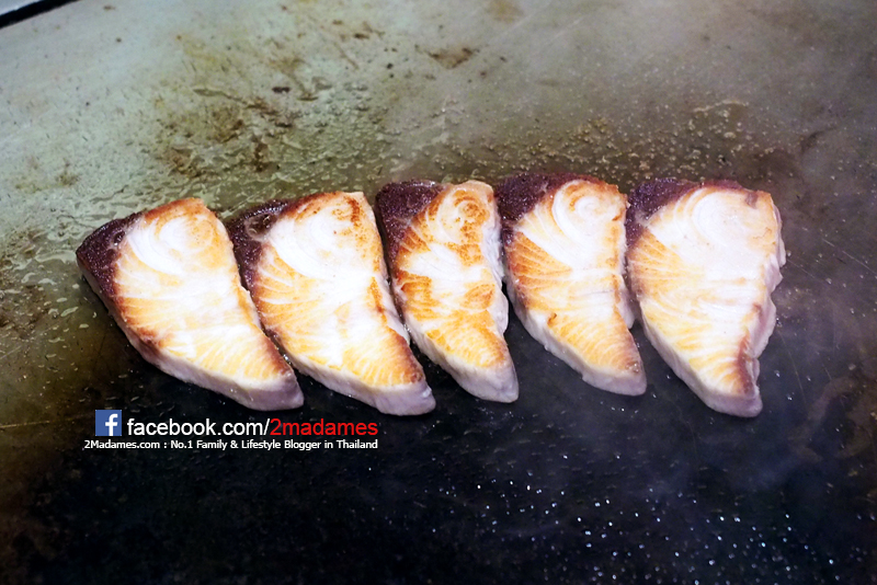 Hamachi Tepanyaki ปลาฮามาจิหรือปลาหางเหลือง ราคา 950++ บาท เป็นปลาที่เนื้อค่อนข้างแน่น ปรุงรสแล้วให้รสชาติที่ค่อนข้างเข้มข้น ปรุงรสด้วยบัตเตอร์เลมอนซอสเหมือนหอยเชลล์เลย