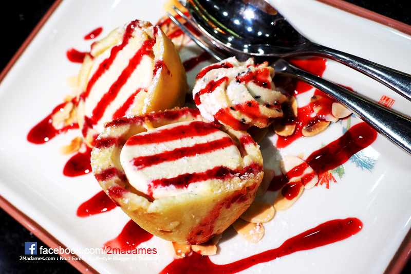 อิ่มแล้ว แต่ขอสั่งของหวานล้างปากกันหน่อยนะ Cheese Cake Dumplings ราคา 160++ บาท เป็นชีสเค้กทอดเสิร์ฟคู่กับไอศกรีมวานิลลา