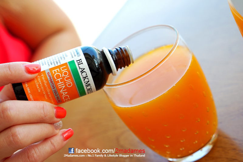 แอนเลยผสม Blackmores Liquid Echinacea ลงไปในน้ำผลไม้ ทำให้รสชาติเหมาะกับเด็กๆมากขึ้น