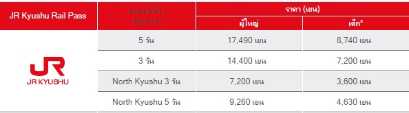 - JR Pass ซึ่งมีให้เลือกทั้งแบบ Northern Kyushu ใช้ได้แค่ตอนบนกับ All Kyushu Area ใช้ได้ทุกพื้นที่ของคิวชู นะครับ ราคาก็จะแตกต่างกัน มีทั้งแบบ 3 วัน 5 วัน (แต่ไม่สามรถนั่งไปพื้นที่อื่นได้นะครับ ถ้าจะไป โตเกียว โอซาก้า ต้องซื้อแบบ All Area) ตั๋ว JR Pass ไม่สามรถซื้อได้ในญี่ปุ่นนะครับ ที่เมืองไทยก็มีหลายบริษัทนำมาจำหน่าย ตามงานท่องเที่ยวทุกครั้งก็จะมีไปขายกันนะครับ บัตรที่ซื้อจากเมืองไทย จะมีอายุ 90 วัน ต้องเอาไปแลกตั๋วที่สถานี JR อีกครั้งนะครับ