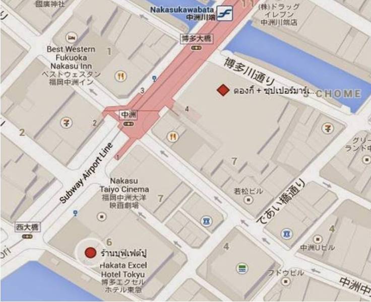 ถ้าเผื่อใครสนใจ Co Co Ichibanya ก็อยู่ตรงนี้เหมือนกันครับ อยู่ตรงทางออก 2 ครับ ร้านบุฟเฟต์ปูนี่ก็จะเดินตามทางจากทางออก 1 ไปนิดนึงครับ ร้านเปิด 6 โมงเย็นถึงตีสี่ เดินตามทางไปจะเจอซอยตรงสะพานข้ามแม่น้ำเลยครับ เดินเลาะเข้าไปในซอย ผ่านโรงแรม Hakata Excel เลี้ยวซ้าย จะเจอป้ายนี้ครับ