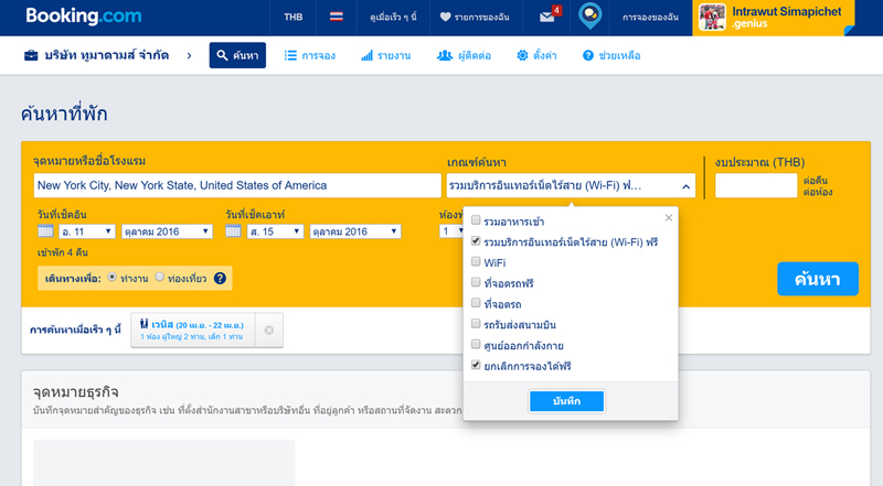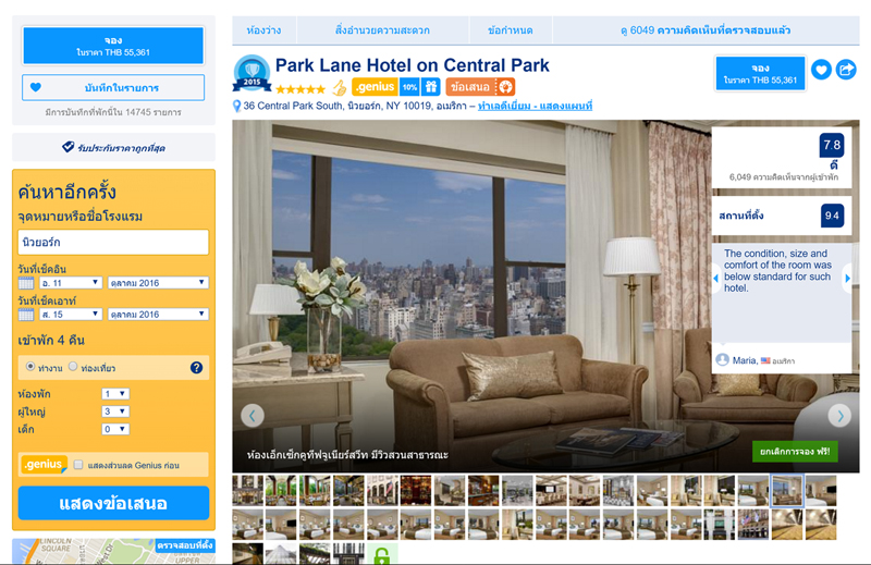 วันนี้ผมจะมารีวิวการจองที่พักด้วย Booking.com ให้ชมกัน โดยยกตัวอย่าง ทริปเดือน ต.ค. 2016 ที่ผมกำลังจะเดินทางไปที่ New York พร้อมครอบครัว ที่จริงแผนการเดินทางก็ยังไม่เสร็จดี และมีโอกาสจะเปลี่ยนแผนการเดินทางได้ตลอดเวลา การจองที่พักผ่าน Booking.com จึงเป็นตัวเลือกอันดับต้นๆของครอบครัวผม เพราะมันสามารถยกเลิกการจองได้ฟรี ทำให้แผนการเดินทางของผมที่ยังไม่แน่นอน สามารถปรับเปลี่ยนและยืดหยุ่นได้