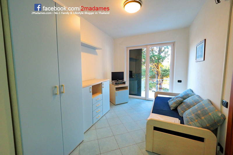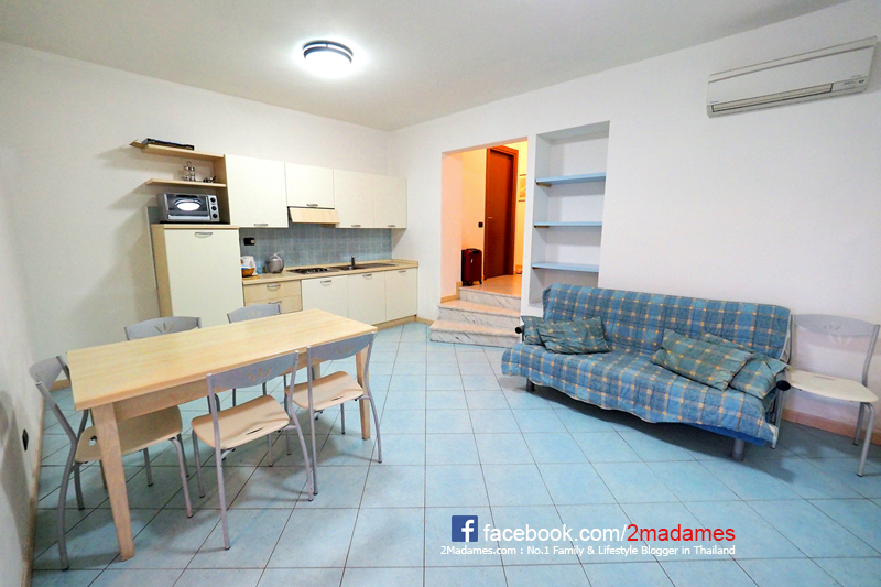 ที่พักที่นี่ชื่อว่า Residence Cielo e Mare อยู่บนเขาสูงมองลงไปเห็นทะเลสวยๆ เรียกว่าเหมือนวิวรีสอร์ทหรูที่ภูเก็ตเลย ห้องพักเป็นแบบอพาร์ทเม้นท์กว้างมากๆ มีหนึ่งห้องนอน ห้องนั่งเล่นใหญ่มาก มีโซฟาแปลงร่างเป็นที่นอนได้ มาพร้อมครัวอุปกรณ์ครบชุด คุณนายแอนเลยได้โชว์ฝีมือทำกับข้าวอาหารไทยให้ทุกคนได้ทาน พอคลายความคิดถึงเมืองไทยลงไปได้บ้าง