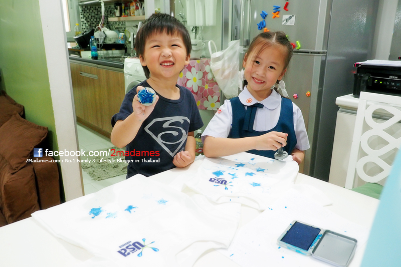 พอเปิดกล่องเท่านั้น เจ้าลิงแสบทั้งสองก็ขอเข้ามามีส่วนร่วมทันที พอรู้ว่ามีตัวปั้มเท่านั้นแหละ รีบเอาหมึกมาปั้มละเลงกันอย่างสนุกสนานเลย