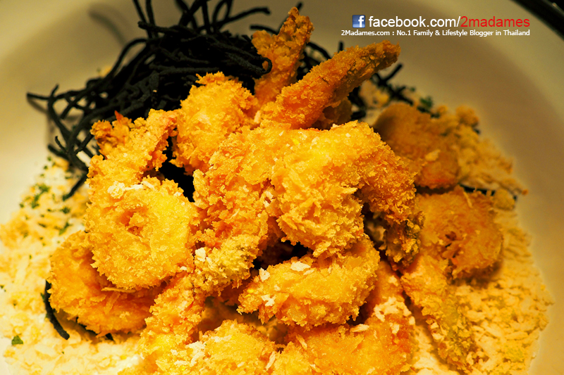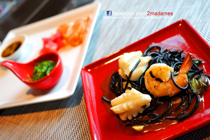 สั่งสปาเก็ตตี้เส้นดำมาโดนหน่อย เชฟมือหนักเค็มไปนิด แต่กุ้งปลาหมึกชิ้นใหญ่เต็มคำดีจริงๆ