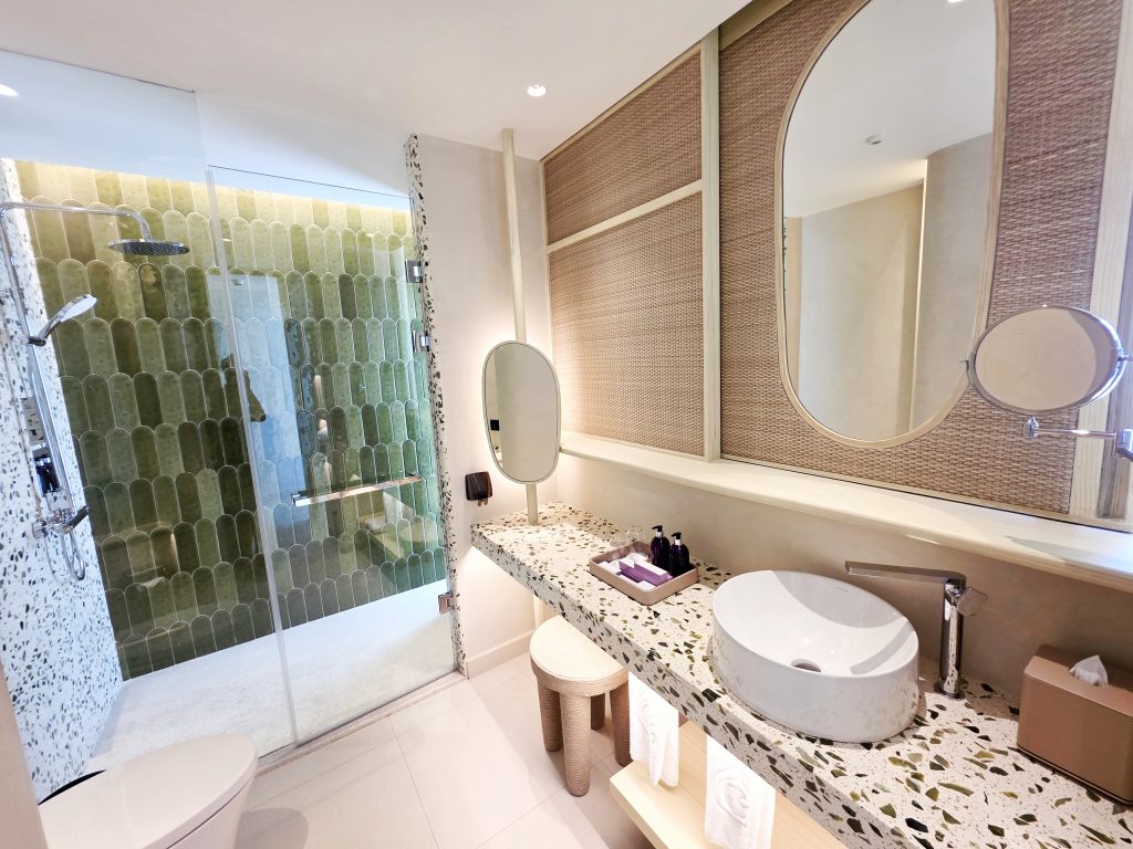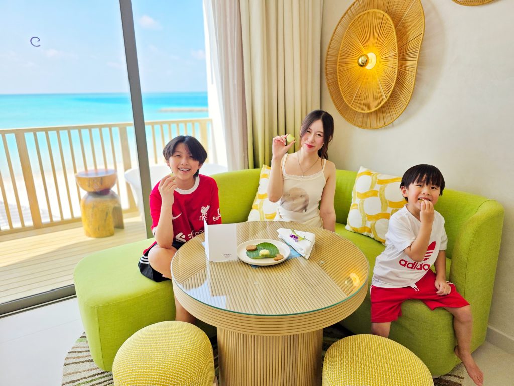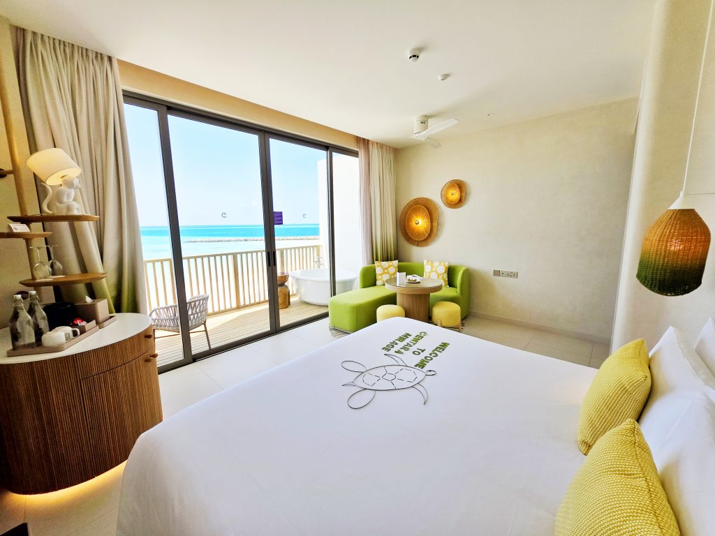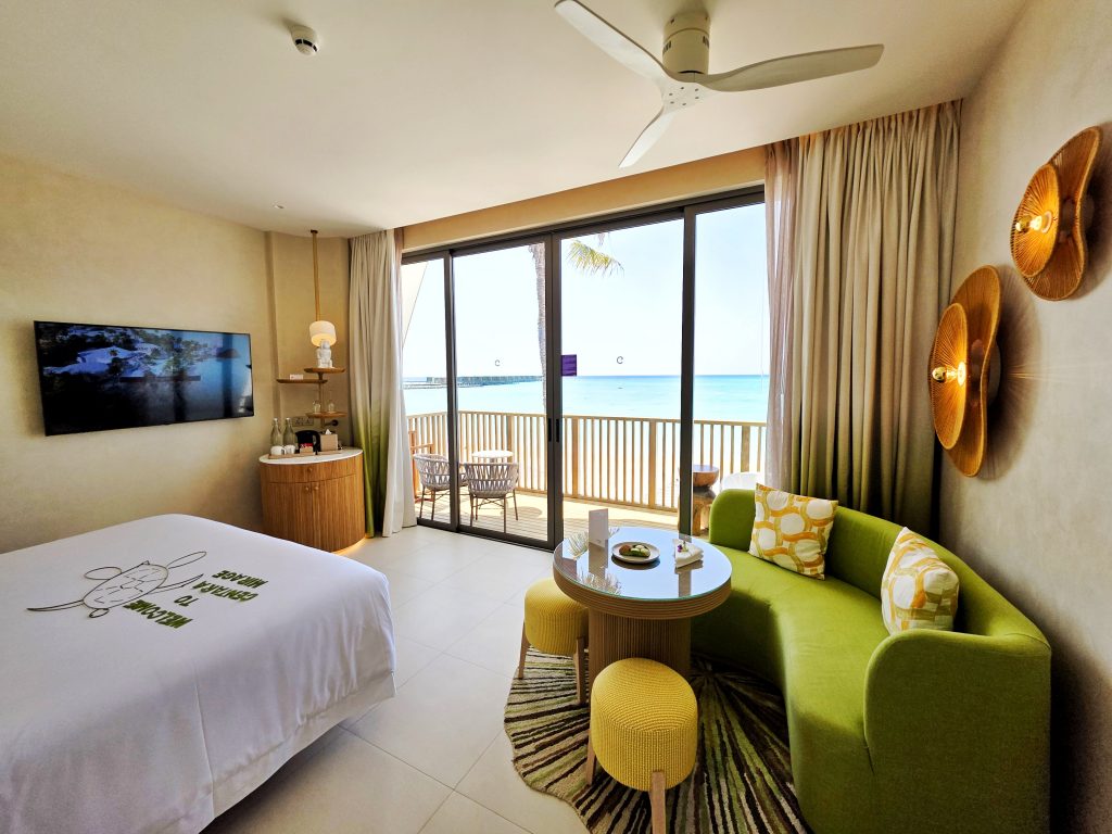ห้องพักของพวกเราจะเป็นแบบ Mirage Panoramic มีโซนนั่งเล่น และเตียงนอนกว้างๆหันออกไปดูทะเลได้เลย เที่ยวนี้เราพักบนหาดนะ ข้อดีคือลงทะเลได้สะดวกกว่าแบบ Water Villa ที่ต้องเดินไกลกว่า เนื่องจากโรงแรมมีนโยบายแบบ Walking Concept หากเรียกรถจะต้องรอนานนิดหนึ่ง