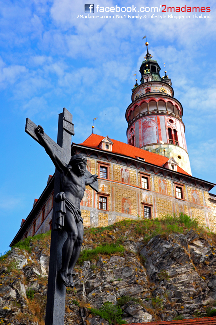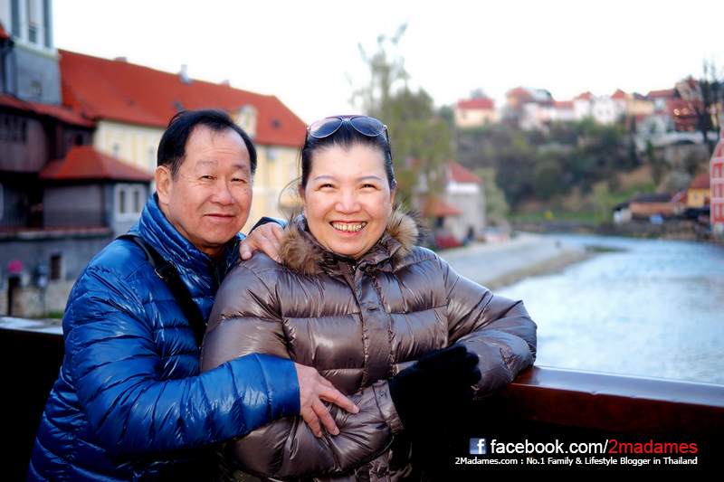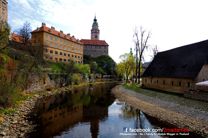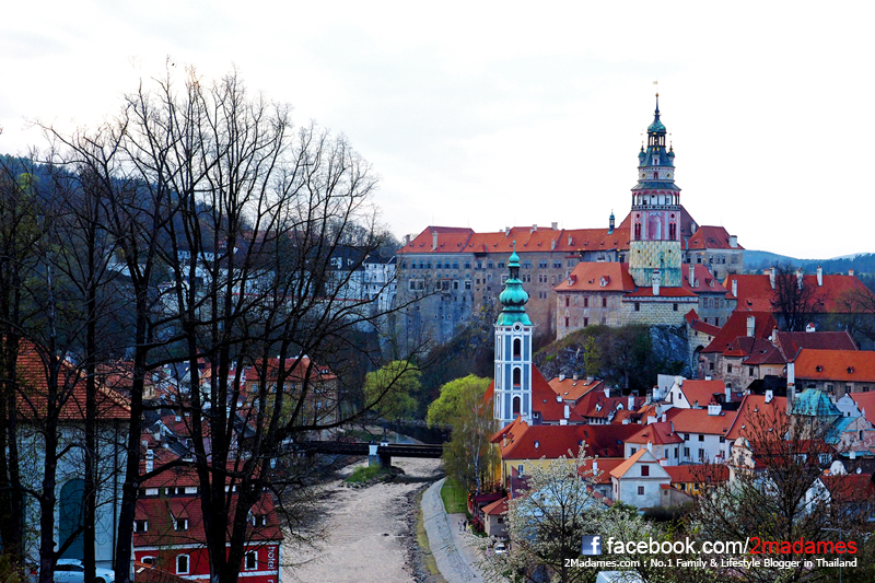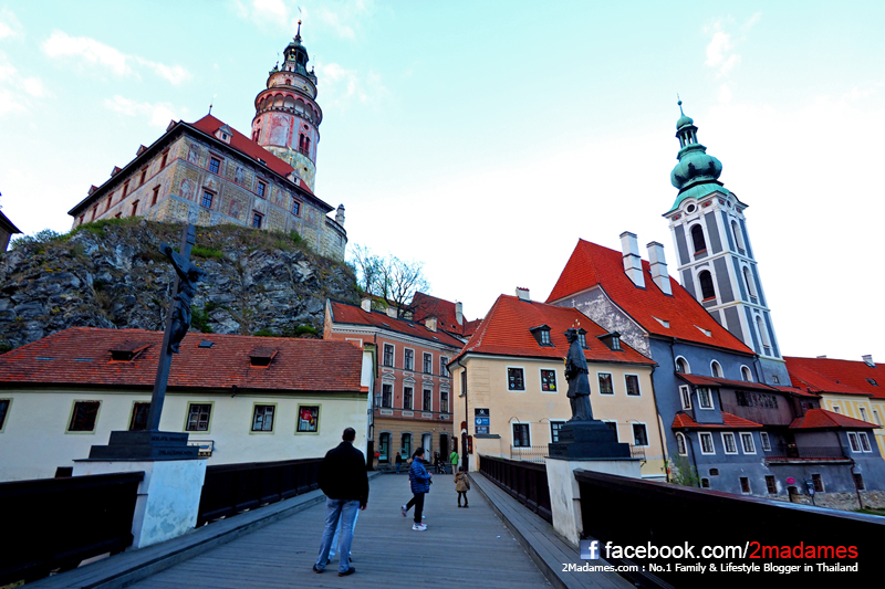 เดินมาถึงสะพานข้ามแม่น้ำ ด้านซ้ายคือปราสาท คลุมลอฟ Krumlov Castle ส่วนด้านขวาคือ St.Jost’s Church ครับ