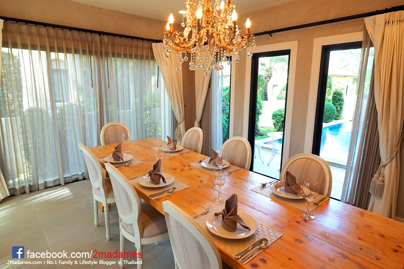 ถัดเข้ามาจะเจอกับโต๊ะทานข้าวขนาด 8 ที่นั่ง ถ้าใครมากันแบบครอบครัวใหญ่ หรือกลุ่มเพื่อนฝูงก็ไม่ต้องกลัวว่าพื้นที่จะไม่เพียงพอเลย