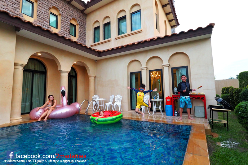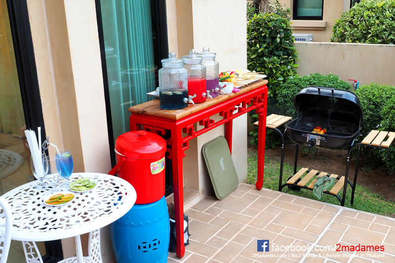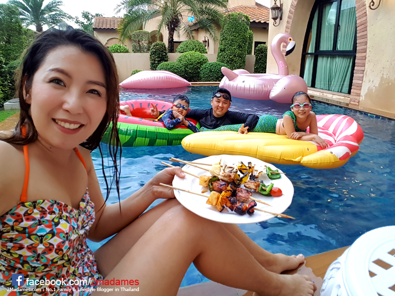นั่งเล่นกันสักพักเราจองเซตบาร์บีคิวริมสระน้ำที่โครงการไว้ เค้าก็มาช่วยกันเซต และจะมีพนักงานมาช่วยปิ้งอีก 1 คน (อันนี้มีค่าใช้จ่ายเพิ่มเติมนะ และต้องแจ้งล่วงหน้า)
