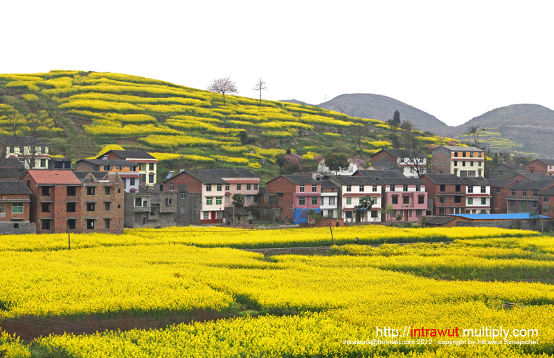ในภาพ คือ ชนบทระหว่างเมืองฉงชิ่งและเมืองเฉิงตู ทุ่งสีเหลืองๆ นั่นคือพืชที่มีเมล็ดนำไปกลั่นเป็นน้ำมันพืชได้ครับ