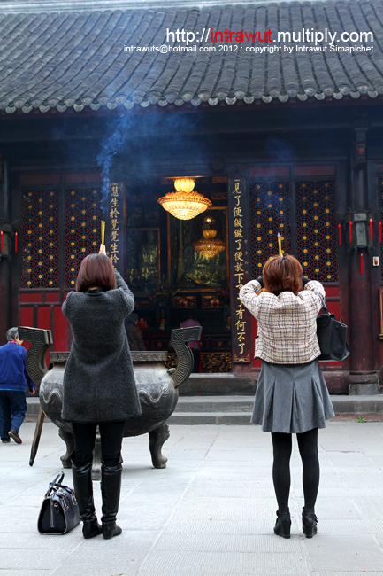 ชาวเฉิงตูให้ความเคารพศรัทธามากๆ แต่ที่นี่ไม่อนุญาตให้ถ่ายภาพภายในวิหารหรืออาคารนะครับ ต้องถ่ายภาพจากภายนอกเท่านั้น