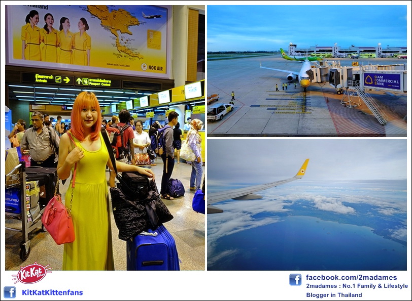 การเดินทางในครั้งนี้เหมียวๆบินไปเที่ยวกับสายการบินนกแอร์ ไฟล์ทของเหมียวๆคือ กรุงเทพฯ (ดอมเมือง) – สุราษฎร์ธานี รอบเช้าสุดเวลา 6.10 น. – 7.20 น. ค่ะ รอบเช้าคนเดินทางกันเยอะมาก ยังไงเตรียมตัวเผื่อเวลากันมาด้วยนะคะ ของเหมียวๆทำการเช็คอินผ่านเวปมาล่วงหน้า เลือกที่นั่งติดหน้าต่างแถวหลังๆฝั่งขวาค่ะ เป็นฝั่งที่ไม่โดนแดดในช่วงเช้า และเพื่อที่จะได้เห็นวิวชายฝั่งทะเลตามภาพด้วยค่ะ ส่วนสีเสื้อผ้าก็จัดมาแบบตั้งใจเลยเหลืองอร่ามไปหมด ถึงหน้าไม่แต่ง ง่วงก็ง่วง แต่ก็ไม่แคร์ยื่นกล้องให้เจ๊ แล้วบอกว่าถ่ายให้น้องหน่อย เอาตรงนี้เลย