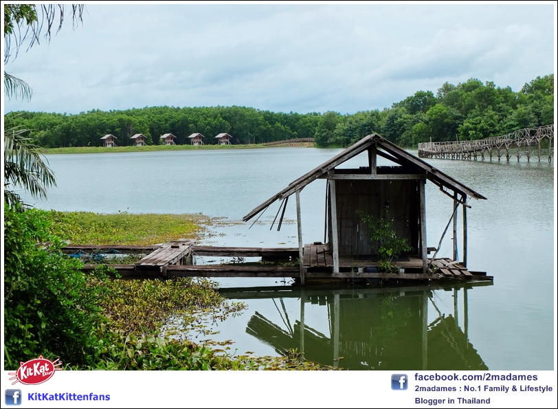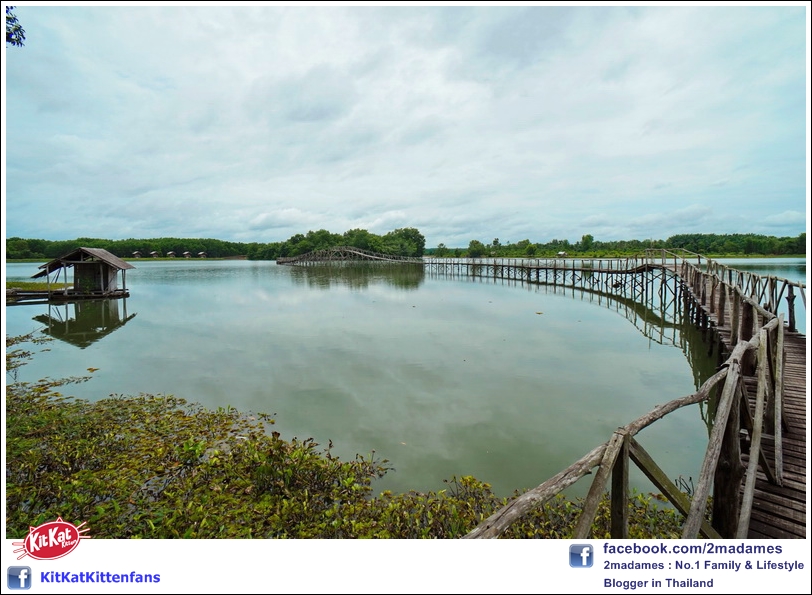 สะพานไม้เคี่ยมจะทอดยาวตามหนองขนาดใหญ่ซึ่งเป็นแก้มลิง จนไปถึงอีกฝั่ง