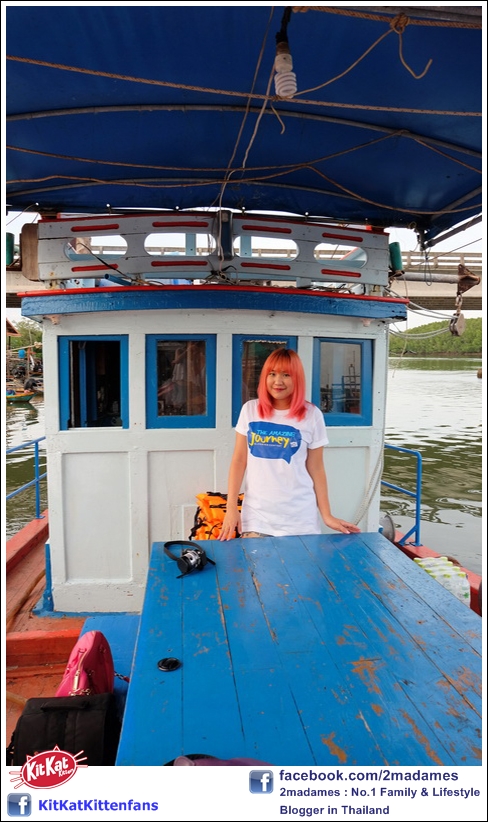 ตื่นเต้นๆ สาวๆลงเรือแล้ว ผมเหมียวปลิวว่อน แต่ผมเจ๊สั้นโชคดีไปหัวชีไม่ยุ่งค่ะ แต่นางเหมียวต้องเอาหมวกมาสวมเพื่อกันไม่ให้หัวกระเจิงไปมากกว่านี้ ตอนที่ออกเรือแรกๆ เหมียวสงสัยค่ะ เพราะเรือวิ่งช้ามาก