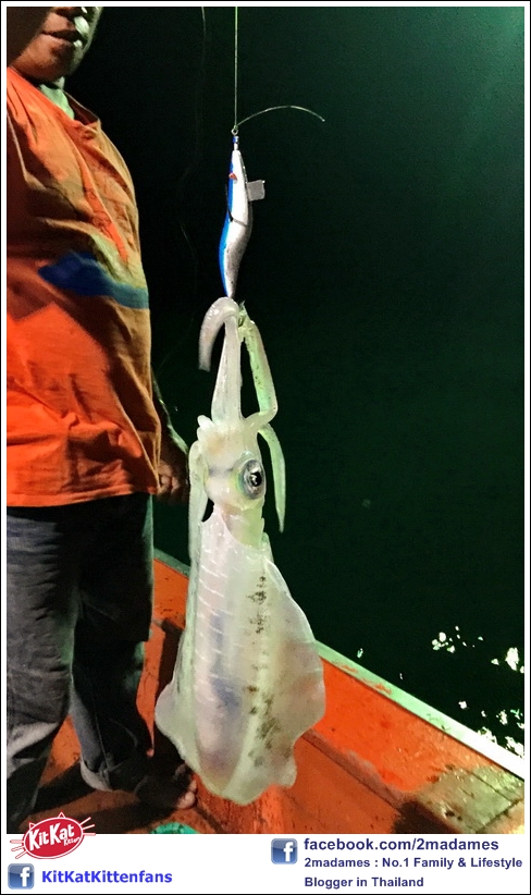 ระหว่างหารตกปลาหมึกให้คอยดึงเบ็ดไว้เรื่อยๆ ถ้าปลาหมึกมากินเหยื่อให้รีบสาวๆขึ้นมา ได้ปลาหมึกแล้วค่ะ