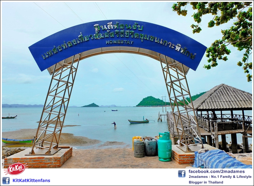 และแล้วก็มาถึงทางไปเกาะพิทักษ์ เหมียวๆได้อ่านข้อมูลมาบ้างว่าเมื่อก่อนเกาะนี้ถูกเรียกว่า เกาะผีทัก เนื่องจากสมัยก่อนมีชาวประมงมาออกเรือหาปลามาแถวๆเกาะนี้ ก็เห็นเหมือนมีเงาคนกวักมือเรียก แต่พอเข้าไปใกล้ ๆ เกาะกลับไม่พบใครเลย ชาวประมงจึงเรียกเกาะนี้ว่า เกาะผีทัก หลังจากนั้้นชาวบ้านที่ย้ายขึ้นไปอยู่บนเกาะได้เปลี่ยนชื่อเรียกเป็น เกาะพิทักษ์ เพื่อความเป็นสิริมงคล และอีกข้อมูลก็คือ