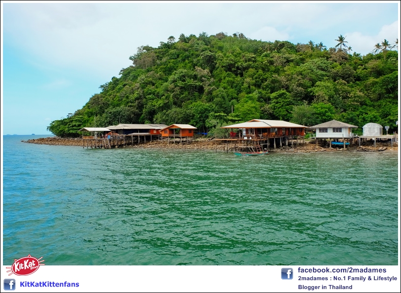 ใกล้ถึงเกาะพิทักษ์แล้ว น้ำคนละสีกับอีกฝั่งเลย ที่เกาะพิทักษ์จะมีบ้านที่เป็นที่อยู่อาศัยของชาวบ้านเอง และบ้านที่เป็นโฮมสเตย์ให้บริการค่ะ