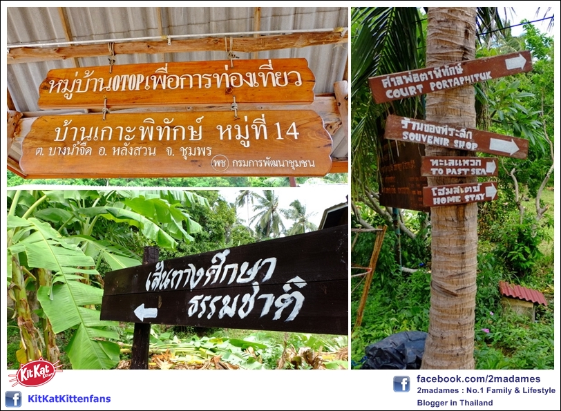 เดินมาถึงก็จะเจอป้ายบอกค่ะ เกาะพิทักษ์ ตั้งอยู่ที่ ต.บางน้ำจืด อ.หลังสวน จ.ชุมพร เป็นเกาะที่มีคำขวัญว่า “ถนนน้ำข้ามสมุทร น้ำจืดผุดกลางเกาะ หอยเจาะทะเลขาด หาดสองน้ำ” ที่เกาะพี่ทักษ์จะมีจุดท่องเที่ยวรอบเกาะค่ะ ซึ่งจะมีป้ายบอก มีทางเป็นบันไดขึ้นเขาบ้าง สามารถขับจักรยานได้ด้วย แต่ด้วยความแมนๆของสองสาว เราเลือกเดินค่ะ