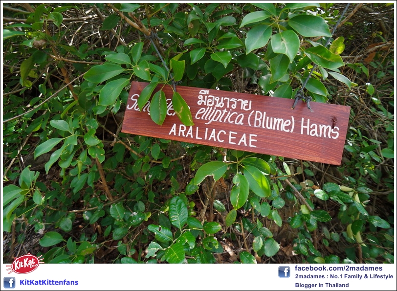 ตามทางจะมีป้ายบอกชื่อพืชพันธุ์ไม้ ชื่อต้นมือนารายณ์