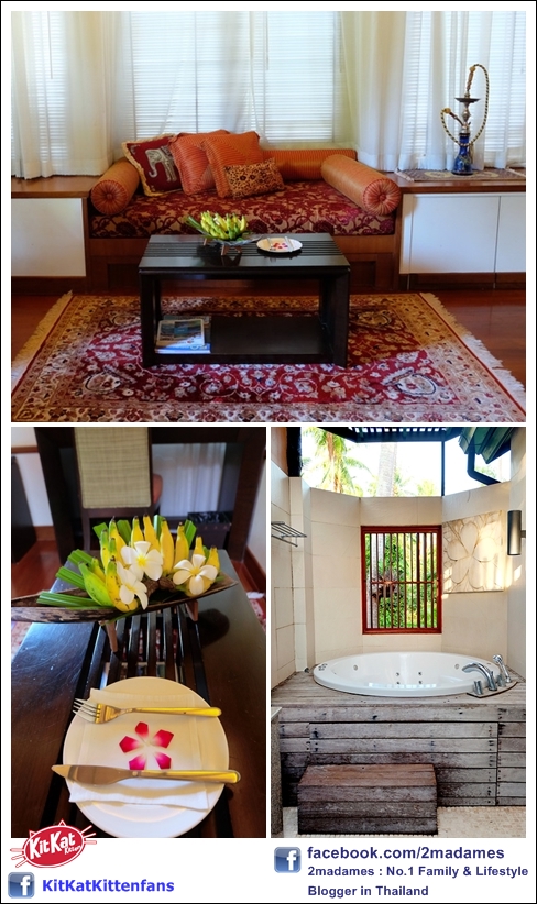 นอกจากนี้ยังมีโซฟาให้นั่งพักสบายๆ ที่บนโต๊ะมีกล้วยเล็บมือนาง ซึ่งเป็นผลไม้ขึ้นชื่อของชุมพร โต๊ะทำงาน และห้องน้ำที่แบ่งส่วนของอ่างอาบน้ำJacuzzi ห้องStream และ Rain shower ได้อย่างลงตัว