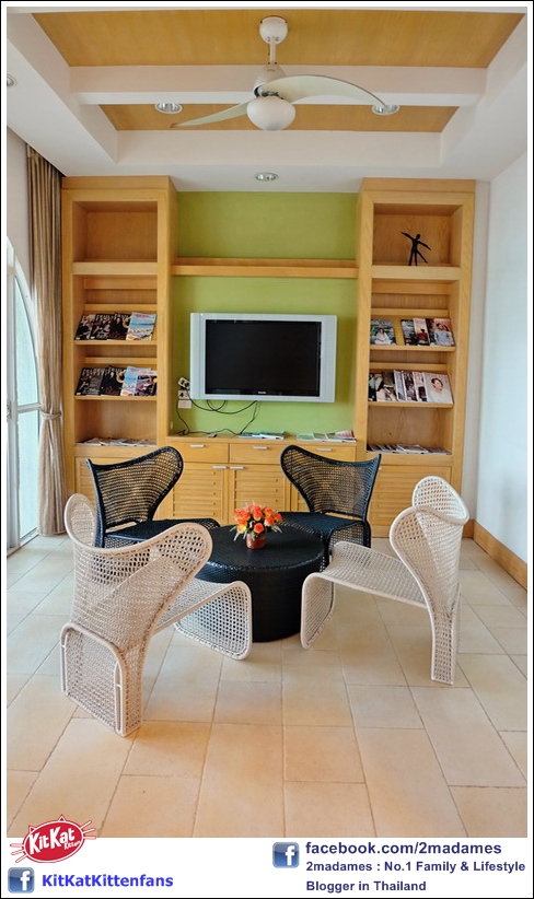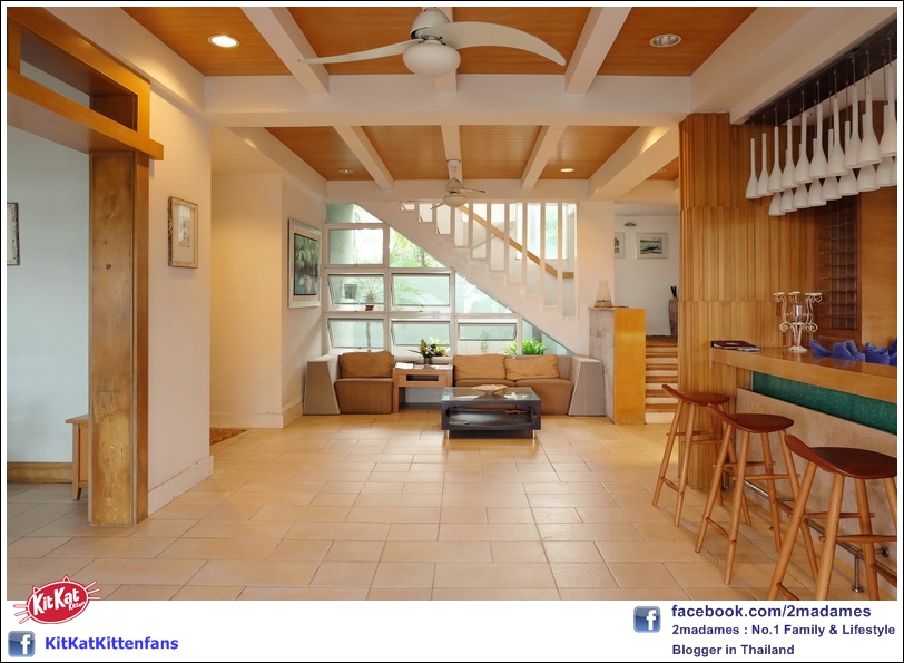 ถัดมาจะเป็น Lobby ใช้โทนสีน้ำตาลอ่อนอบอุ่นๆ และสีฟ้าค่ะ