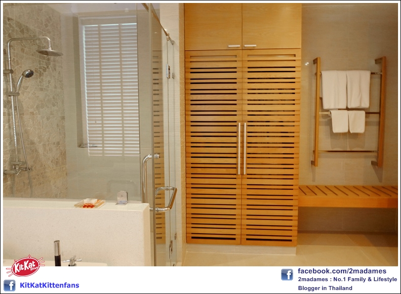 ในห้องน้ำจะมีตู้บานใหญ่ ห้องกระจกอาบน้ำที่มีทั้งฝักบัว และ Rain shower