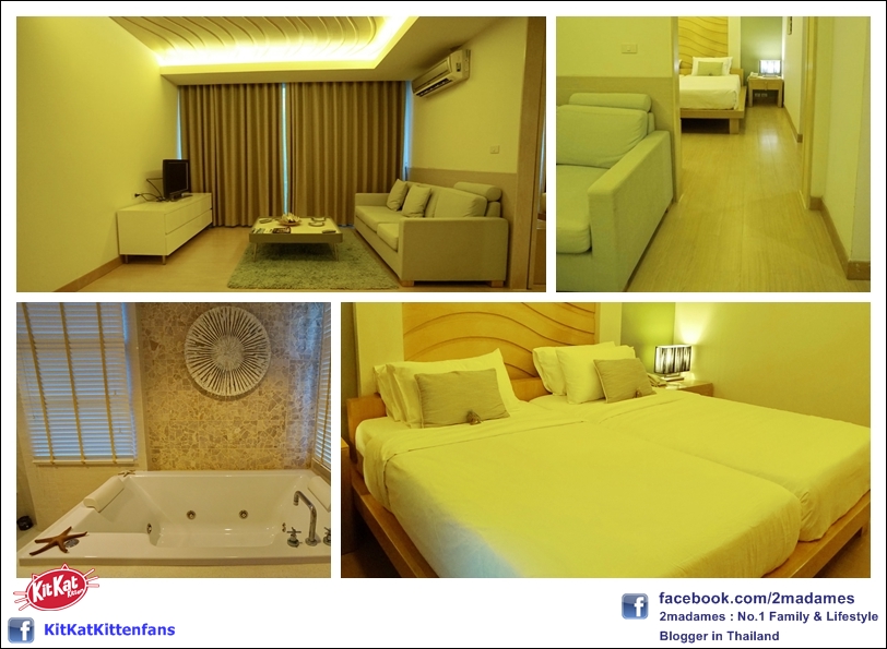 และ Type สุดท้ายที่อยู่ชั้น 2 ชื่อห้อง Beachfront Jacuzzi Suite ซึ่งจะมีทั้งแบบเตียงเดี่ยวและเตียงคู่ ตามในภาพเป็นเตียงคู่เช่นกันค่ะ พร้อมอ่างอาบน้ำ Jacuzzi
