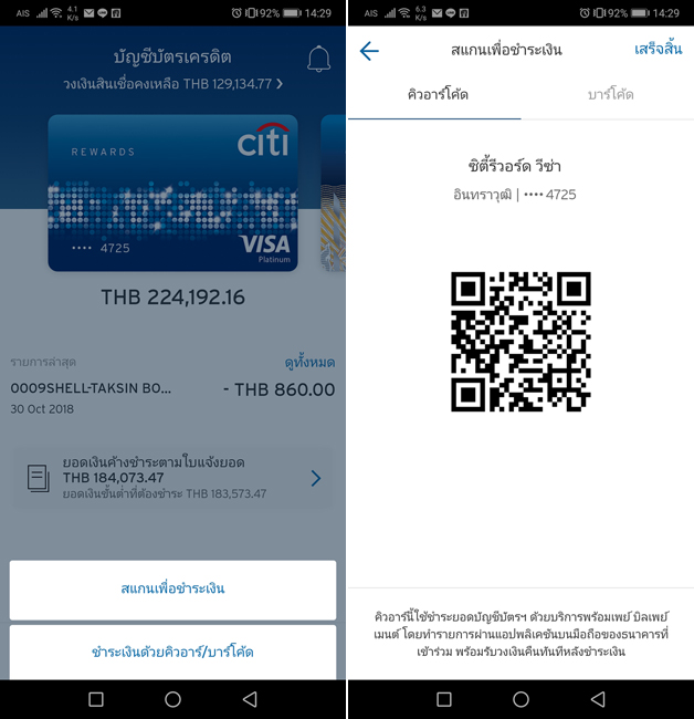 แต่ที่ดีงามก็คือ เมนูการสแกนเพื่อจ่ายเงิน และชำระเงินด้วย QR Code