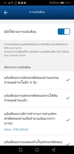 นอกจากนี้ยังมีการแจ้งเตือนที่เราต้องการให้แจ้งเตือนมายังโทรศัพท์มือถือเรา เช่น การแจ้งเตือนให้ชำระเงินต่างๆ หรือมีการทำรายการที่เกินกว่ากำหนดก็ได้