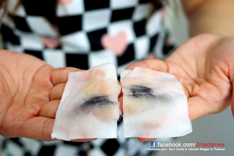 เช็ดเบาๆรอบดวงตาและทั่วทั้งใบหน้า จนกระทั่งไม่เห็นเครื่องสำอางบนสำลีอีก แอนใช้สำลีไปทั้งหมดแค่ 4 แผ่นเองคะ
