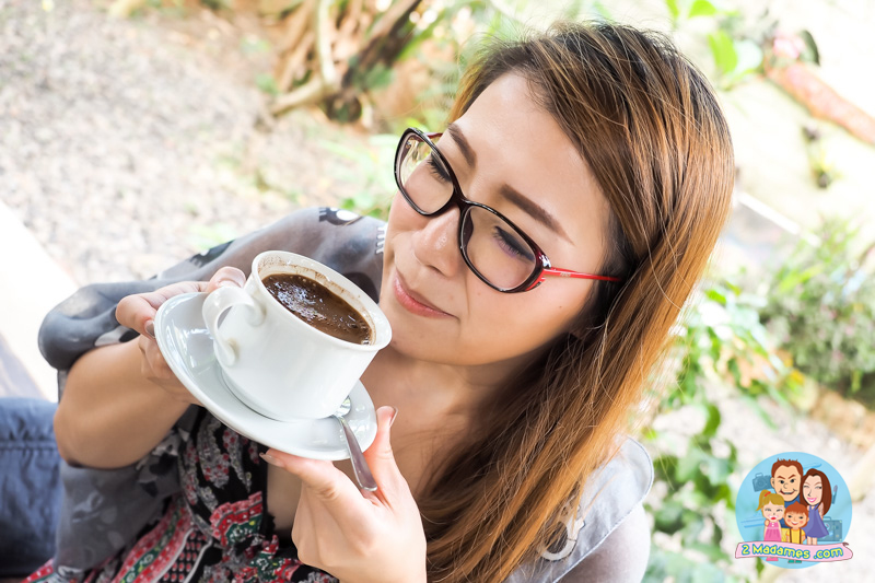 ทางฟาร์มจะเอาชาและกาแฟต่างๆ 12 แก้วมาให้ชิม มีทั้งชาตะไคร้, กาแฟบาหลี ฯลฯ แต่กาแฟขี้ชะมดไม่ให้ชิม อยากชิมต้องจ่ายตังนะจ๊ะ