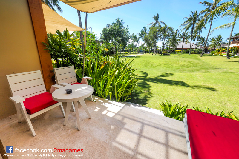 ห้องพักจะมีระเบียงให้ออกมานั่งพักผ่อน วิวจะเป็นสวนสวยๆ