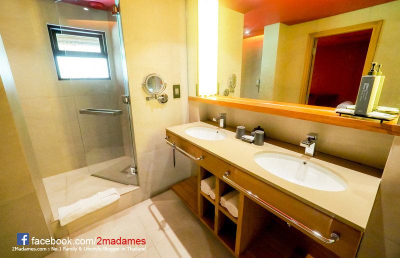 ห้องน้ำกว้างพอสมควร มีสองอ่างล้างมือไม่ต้องแย่งกัน