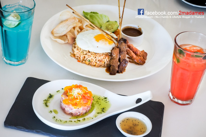 อย่างสองจานที่สั่งมานี้เป็น ทูน่า ทาร์ทาร์ ซอสมะม่วง เรียกว่าอร่อยเลยล่ะ ส่วนอีกจานสั่งสะเต๊ะรวมเสิร์ฟกับข้าวผัดและซอสพีนัท