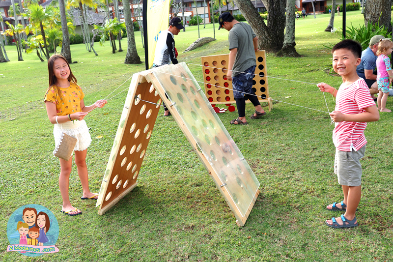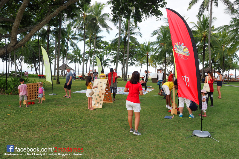 หยิบมือถือไปไกลๆ แล้วมาเล่นด้วยกันดีกว่า ลานกิจกรรมยามบ่ายๆ มีของเล่นต่างๆให้เด็กๆได้เล่นกัน ทั้ง Molkky, Giant board games, Giant Twister, Giant Connect 5