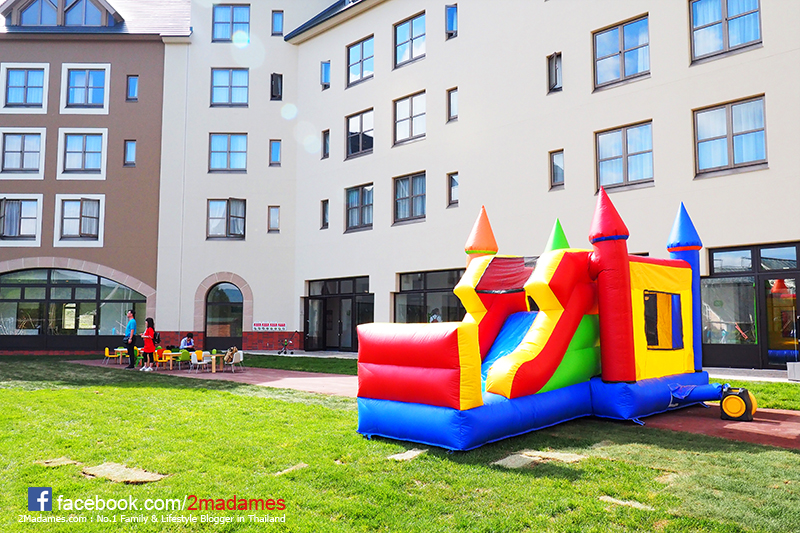 ในวันที่อากาศดีๆ เค้าจะเอาโต๊ะ และบ้านลมมาตั้งให้เด็กๆเล่นกันที่สนามหญ้า