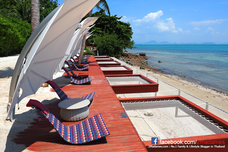ที่ริมหาดจะมีเก้าอี้ไว้ให้แขกนั่งพักผ่อนกัน