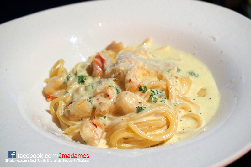 จานแรกเป็นเมนูของเด็กๆซึ่งสั่งจาก Kids Menu สปาเก็ตตี้คาโบนาร่ากุ้ง รสชาติอร่อยครีมมี่มาก แอบชิมของเด็กๆไปหลายคำอยู่ 555