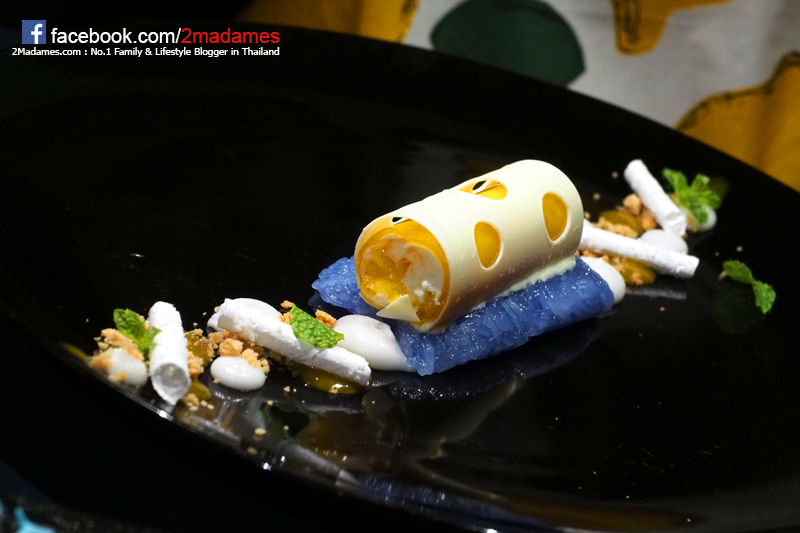 ของหวานเป็นข้าวเหนียวมะม่วงที่บอกเลยว่าไม่ธรรมดา เป็นข้าวเหนียวอัญชัญ ท็อปด้วยมะม่วงสุกหวานๆที่มีครีมกะทิสอดไส้ ทานคู่กับเมอแรง เอาเป็นว่านอกจากหน้าตาดี ยังรสชาติอร่อยด้วย อยากให้มาลิ้มลองกัน
