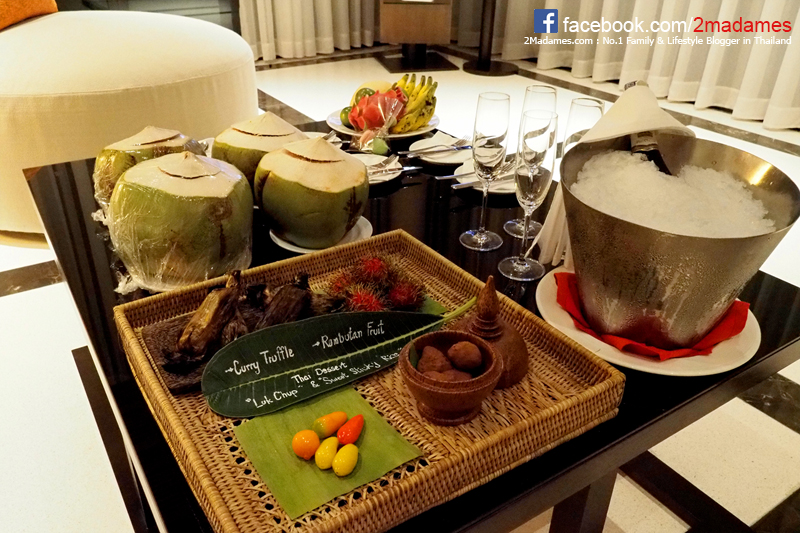 บนโต๊ะมี Welcome Fruit ชุดใหญ่จัดเตรียมไว้ให้เลย