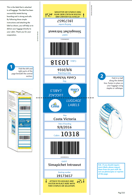 เมื่อจองเสร็จในตั๋วเรือที่ส่งมาทางอีเมล์จะมีให้พิมพ์แทกกระเป๋าด้วย ก็ให้เราพิมพ์ออกมาไว้พร้อมกับตั๋วเรือ