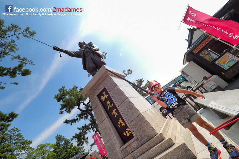 วันนี้ซื้อทัวร์อีกแล้วนะ เค้าพาไปยังปราสาท Matsue Castle ก่อนเลย มาถึงก็เจอกับอนุสาวรีย์นักรบถือดาบ น้องกายขอถือดาบบ้างนะ