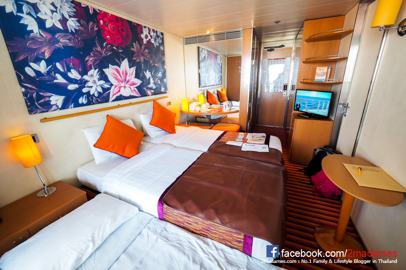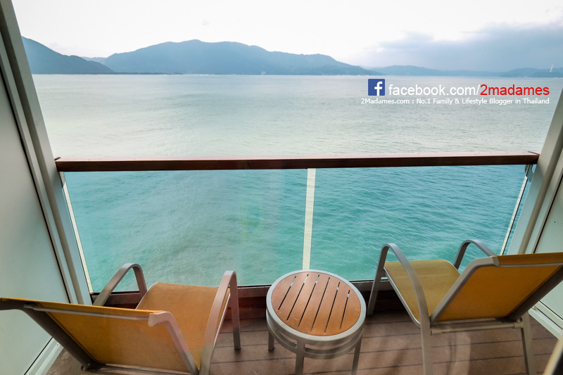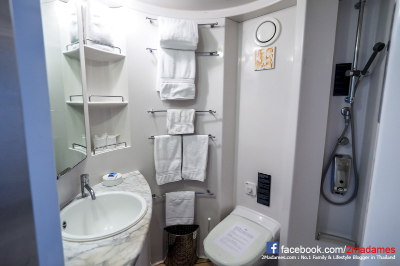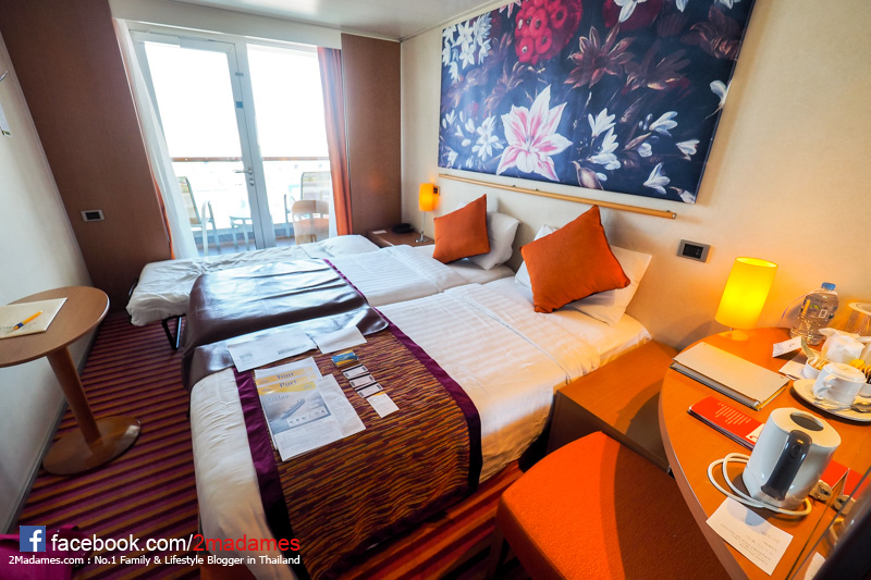 ห้องพักของเราเป็นแบบ Cabin with ocean view balcony เสริมเตียงเด็กหนึ่งเตียง (อาจจะเสริมเตียงไม่ได้ทุกห้องนะ ต้องสอบถามจากเรือ และมีค่าใช้จ่ายเพิ่มเติม) โดยรวมห้องค่อนข้างมีพื้นที่จำกัดนะ แต่เวลาส่วนใหญ่เราก็ไม่ค่อยจะอยู่ในห้องนอนเท่าไหร่ จะใช้เวลาอยู่ที่พื้นที่ส่วนกลางมากกว่า