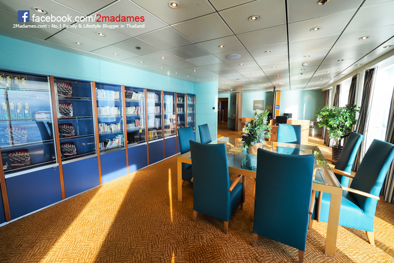 บนเรือจะมีห้องสมุดให้ใช้ อีกด้านของห้องจะเป็นคอมพิวเตอร์ที่ให้บริการอินเตอร์เนต แต่ค่าเล่นเนตแพงมากจ้า ควรพก Pocket Wifi มาเองจะดีกว่า ซึ่งจะมีสัญญาณแค่ช่วงที่เรือเทียบท่านะ ในเวลาที่เรือออกทะเลไปแล้วจะไม่มีสัญญาณละ