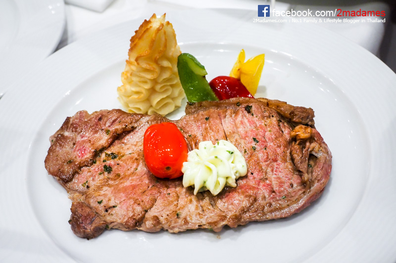 แต่ถ้าไม่ทานล็อบสเตอร์ ก็ทานเมนูปกติก็ฟรีจ้า ไม่มีค่าใช้จ่ายเพิ่มเติม จานนี้สเต็กเนื้อ