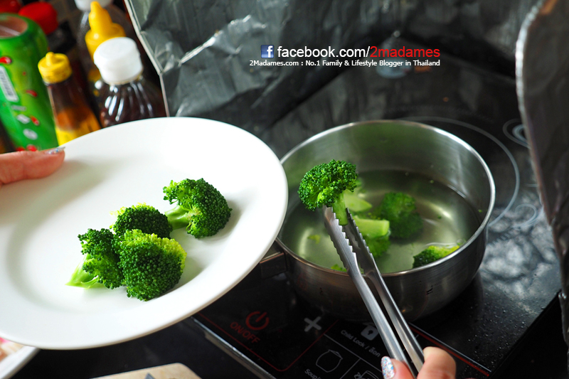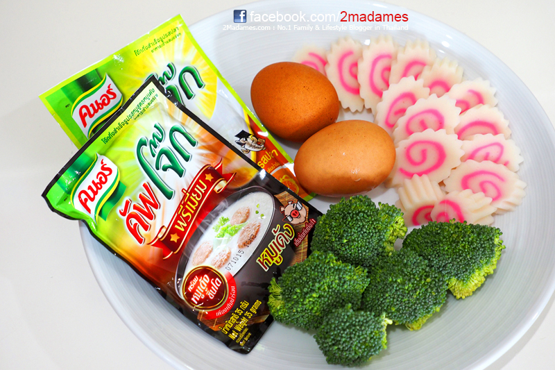 เริ่มกันที่ เมนูแรก โจ๊กหมวยน้อยกันก่อนนะ เพิ่มคุณประโยชน์ให้โจ๊กด้วยการเติมผักกันสักหน่อยนะคะ ต้มบล็อกโคลี่และลูกชิ้นลงในน้ำเดือด