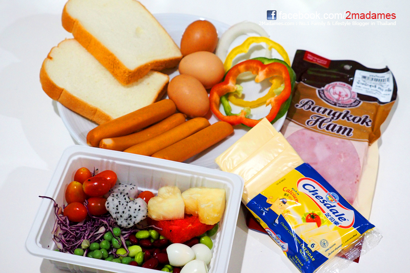 เรามาต่อด้วยเมนูที่สร้างสรรค์จากไข่และขนมปังกันนะ เพื่อให้ได้เมนูคล้ายๆเดิมแต่เพิ่มความแปลกใหม่ให้เด็กๆไม่รู้สึกว่าต้องทานอะไรที่ซ้ำซากจำเจ นอกจากวัตถุดิบหลักๆที่กล่าวมาข้างต้นแล้วนั้น จริงๆแล้วยังมีวัตถุดิบอีกหลากหลายที่สามารถนำมาเป็นส่วนประกอบ สำหรับวัตถุดิบอื่นที่แอนมักมีติดตู้เย็นไว้เสมอๆและเตรียมเพื่อปรุงอาหารในวันนี้ได้แก่ หมูแฮม ชีส (หรือไส้กรอก) และผักสลัดผลไม้หลากหลายชนิด